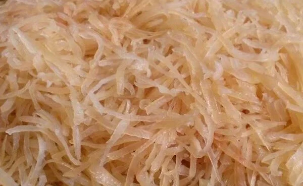 Bì heo sau khi mua về bạn sát muối để loại bỏ mùi hôi của bì, sau đó bỏ bì heo vào nước đun sôi 15 phút cho bì heo chín, vớt ra ngâm vào nước lạnh 10 phút để bì săn lại. Sau đó lọc bỏ lớp mỡ, rửa sạch và cắt thành sợi mỏng.