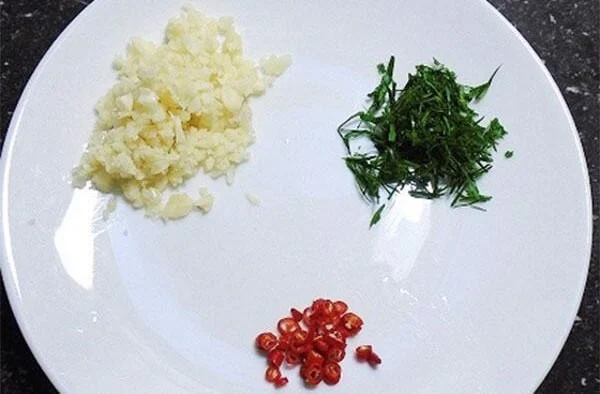 Tỏi: Tỏi đập dập băm nhỏ. Cũng như phần ớt, tỏi sau khi làm xong bạn cũng chia làm hai phần, một phần dùng để trộn nem và một phần dùng để pha nước chấm nem.