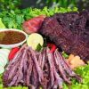 Chân giò gác bếp nguyên xương là một đặc sản độc đáo của vùng núi Tây Bắc, thường được làm từ chân giò trước của lợn đen để đảm bảo tỷ lệ nạc, mỡ và gân cân đối. Khác với các loại thịt miếng nhỏ thông thường, chân giò để nguyên cái gác bếp đòi hỏi quy trình chế biến và thời gian hun khói kỳ công hơn.